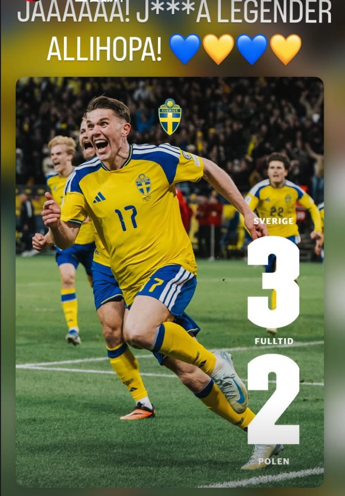 扫描下载懂球帝首页>动态> 庆祝瑞典晋级世界杯,伊萨克社媒:你们真**是一群传奇!