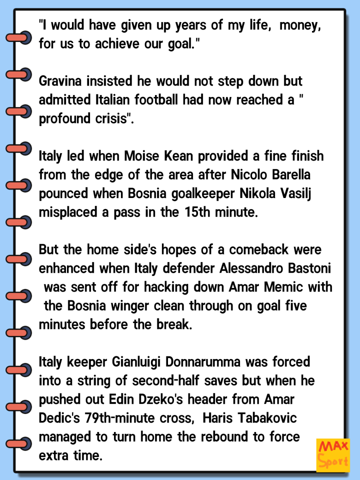04-01 12:03意大利再次无缘世界杯,安布:心死的感觉,像经历丧亲之痛