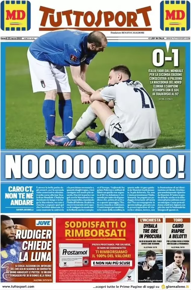 《米兰体育报》当天的头版标题是“意大利回家:一场失败;一片狼藉” ,殊不知这只是噩梦的开始。
