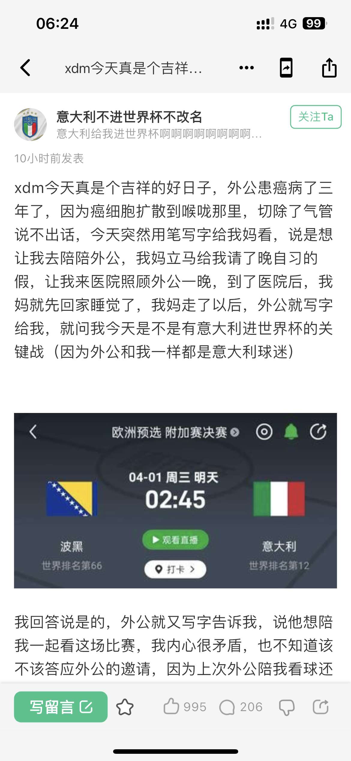 04-01 07:17球迷态度:你看过意大利踢世界杯吗?意大利上次参加世界杯时你多少岁?