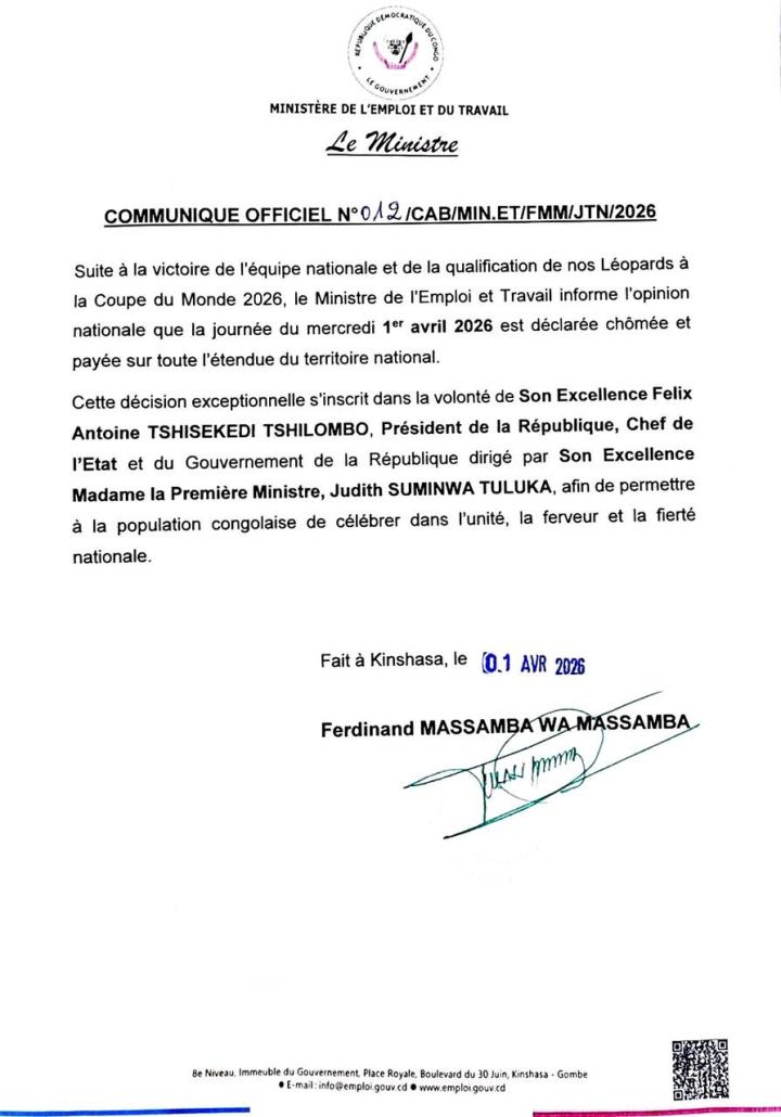 扫描下载懂球帝首页>动态> 时隔52年重返世界杯,民主刚果官方宣布全国放假一天