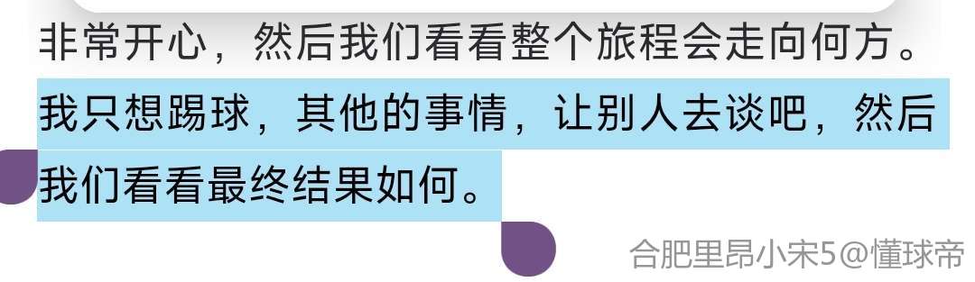 当然,总会梦想在某个地方踢球,但我想我从未想过会是这样的方向。当你某天坐在那里回想,会觉得有点不真实,“哇,还不错”,但当你身处其中,就在你现在的位置,我总是……。有趣的是,你永远无法满足于现状。但我当时无法想象,现在事情发展得还不错。