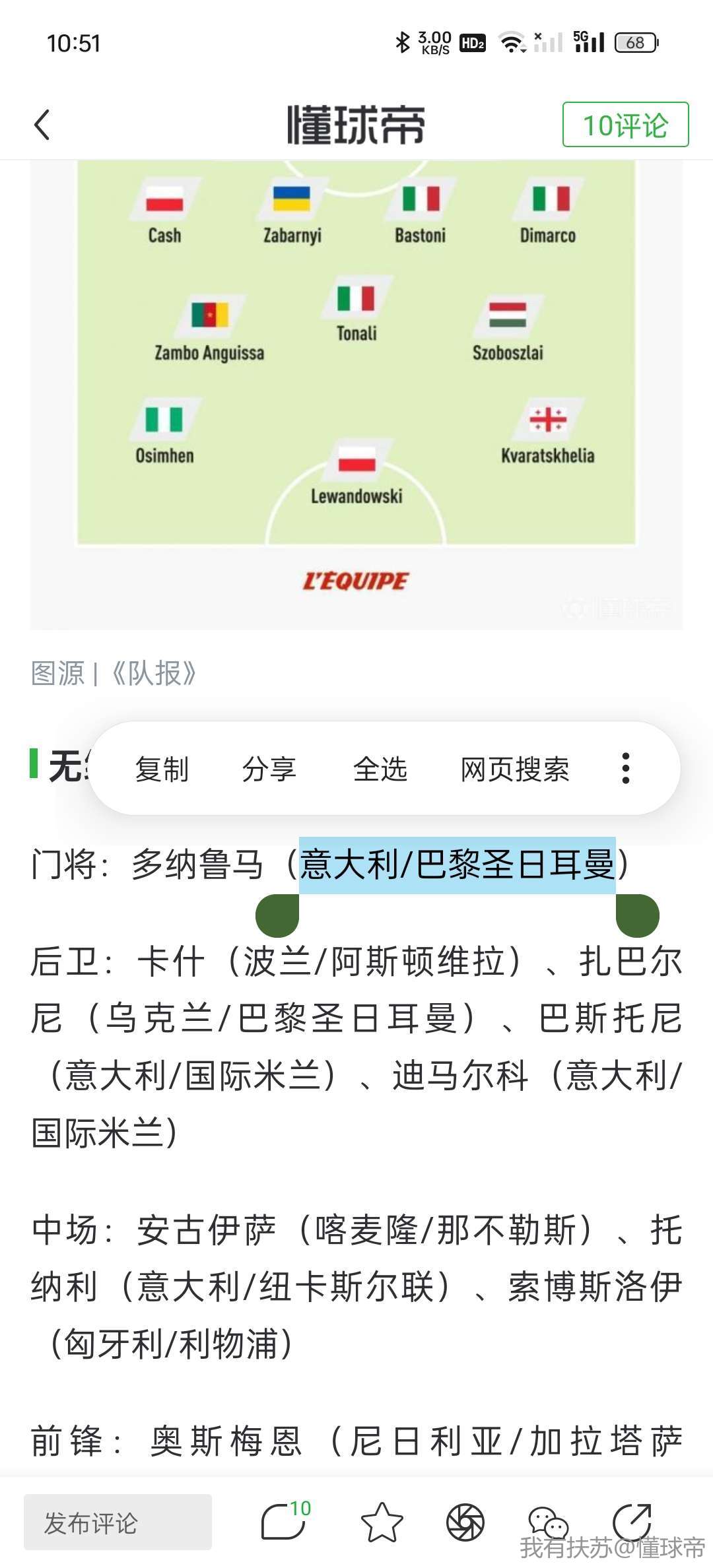 扫描下载懂球帝首页>动态> 队报列无缘世界杯最佳11人:莱万、KK、索博、多纳鲁马在列