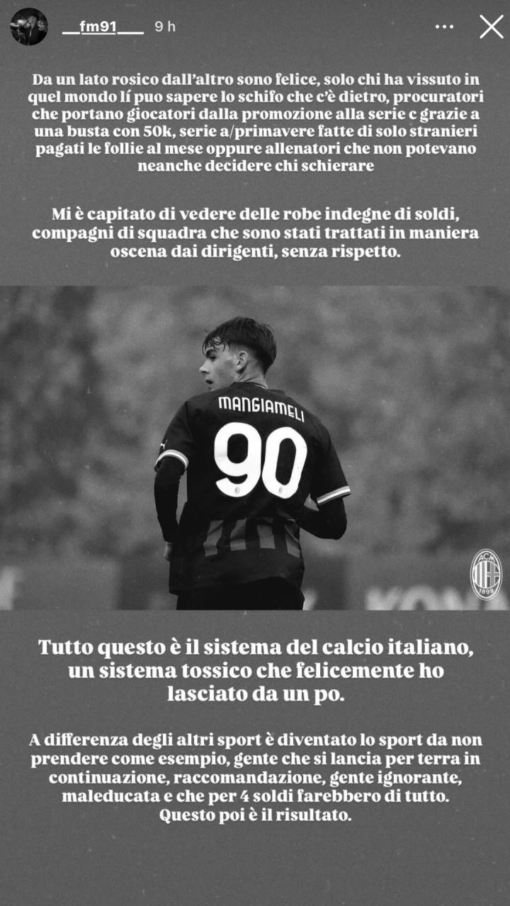 扫描下载懂球帝首页>动态> 前米兰青训小将:意足坛是个有毒的体系;5万欧红包就能运作到意丙