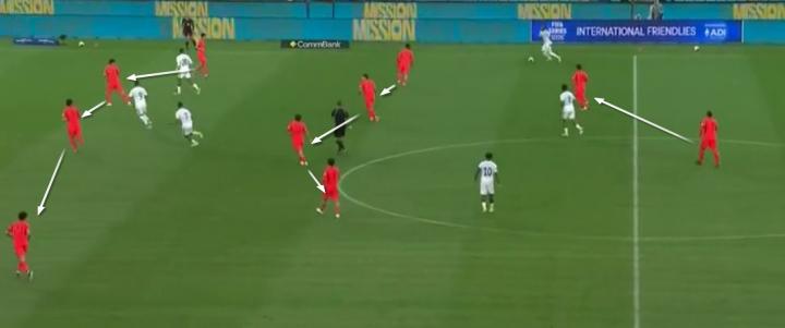 4.下半场上来战术突然变为“开大脚绕过中场找 拜合阿木,10分钟内有5次突击到对方大禁区附近,效果明显(下半场后期对方前场上抢有所松懈后,我们又慢慢控制了一段时间中场)