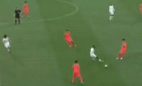 张玉宁本场比赛的状态实在太好,这次回撤之后轻巧地将球卸下,随后转身倚住后卫向前推进,在这个过程中他连续躲开了库拉索两名球员的放铲,只可惜最后向边路的分球出现了失误。