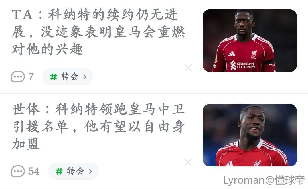 科纳特推迟做决定的风险很小,但如果球员不幸受伤,他的处境就会变得很危险。对于利物浦而言,失去这样一位英超冠军成员、在俱乐部效力五年且正值巅峰的球员无疑是一大打击,他们很可能需要寻找替代者。