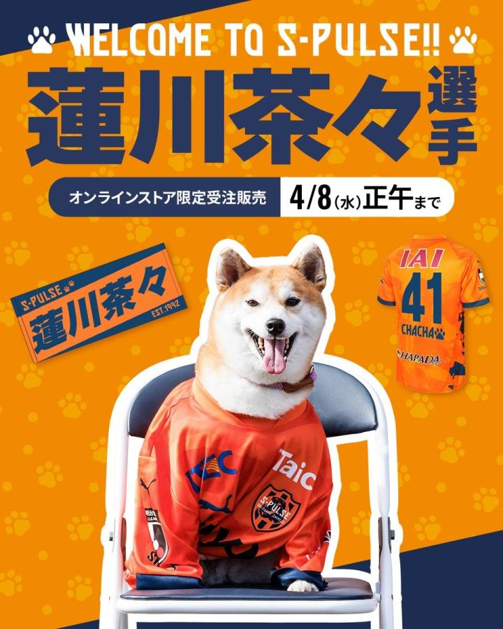 北京时间4月1日消息(愚人节当天),据J联赛清水心跳官方消息,清水心跳签下4岁秋田犬莲川茶茶,它将身披41号球衣。