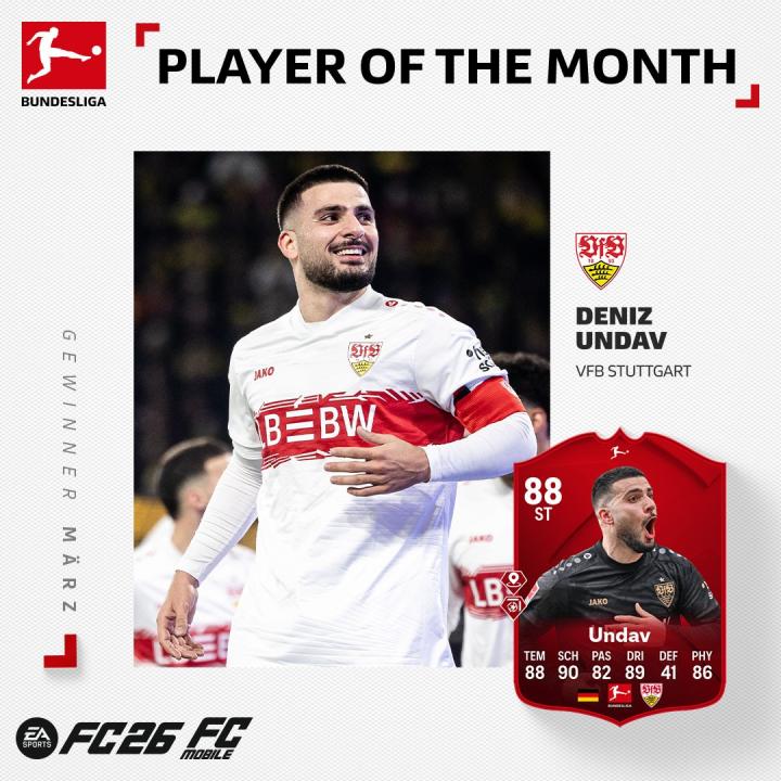 扫描下载懂球帝首页>动态> 4场5球2助,斯图加特前锋昂达夫当选德甲3月最佳球员
