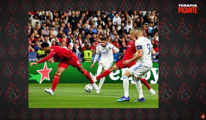 欧冠决赛。那一次我在右路带球,一直带一直带,然后我起脚打门。我心想,这球要是打进门柱边上,那就是世界波,我们就是冠军了。结果我一踢,球又飞到另一边去了。然后维尼修斯突然出现在那边,轻轻碰了一下,进了。我们就是靠那个球赢下欧冠的。对我来说,那也特别重要。