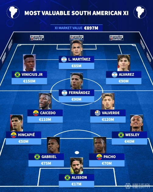 南美最贵11人阵容