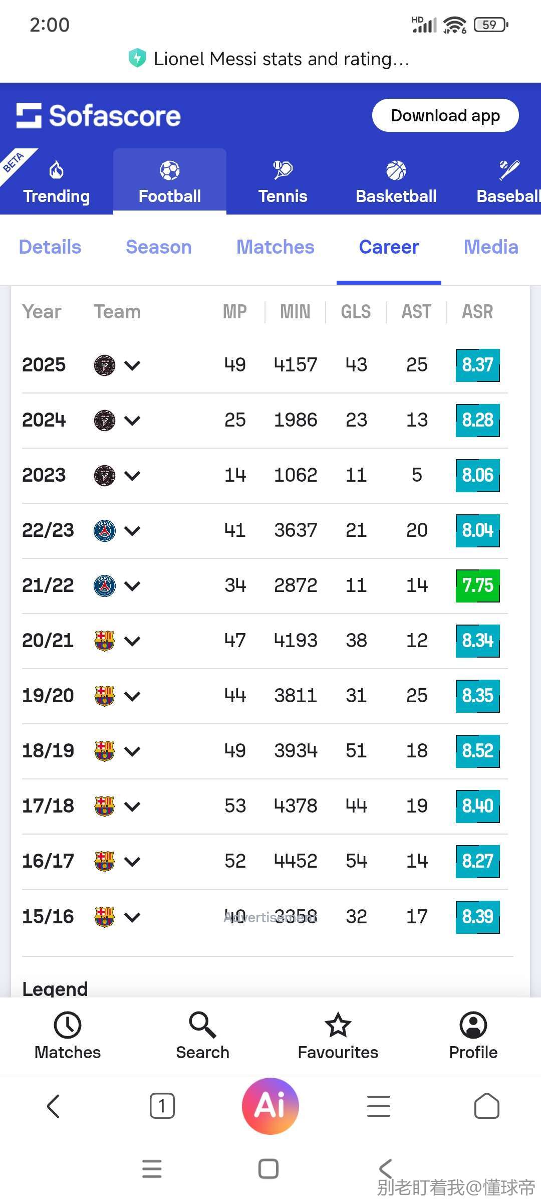 扫描下载懂球帝首页>动态> 懂球号> whoscored五大联赛过去十年场均评分最高: