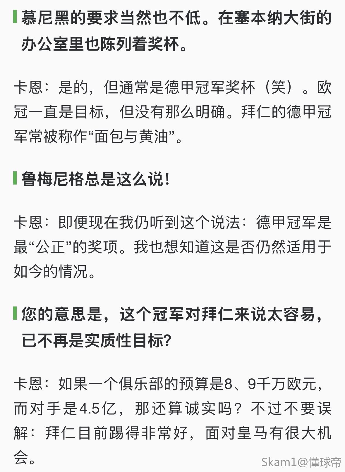 卡恩:即便现在我仍听到这个说法:德甲冠军是最“公正”的奖项。我也想知道这是否仍然适用于如今的情况。