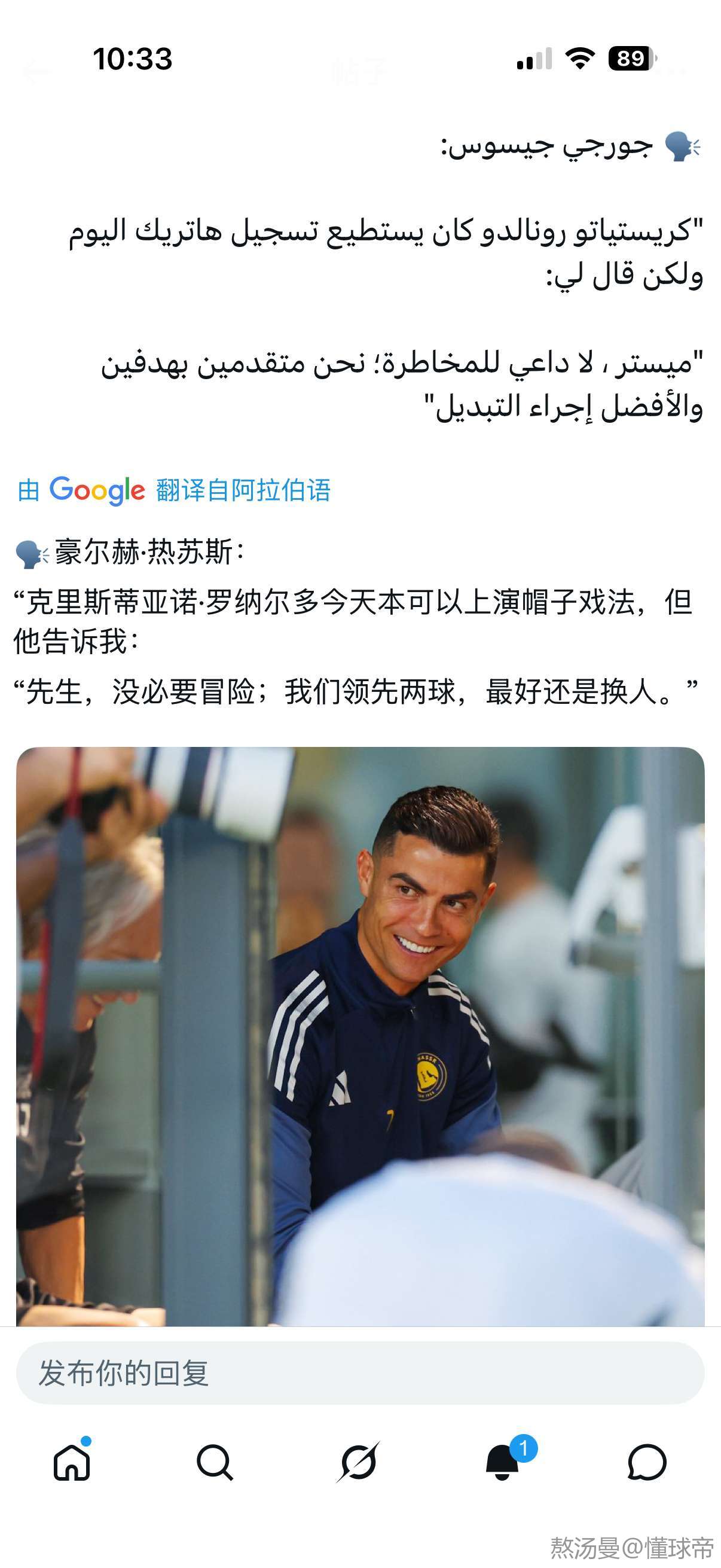 你如果一定要把“教练必须拥有至高无上权威,球员必须无条件服从教练一切决定”当做铁律的话,那你当然可以尽情嘲讽利雅得球队,大肆阴阳C罗凌驾球队之上。但C罗还真就不是普通球队一员,还真就能脱离一般意义上球队-教练-球员这一关系体系。