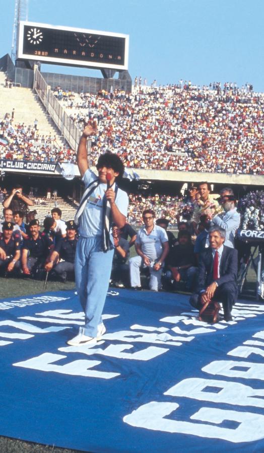 马拉多纳在那不勒斯主场受到了75000名球迷的热情欢迎。在此之前,意大利的南方球队从来没有拿过联赛冠军,而且那不勒斯在意甲联赛里还是一支弱旅,在马拉多纳来之前差点就要降级。但马拉多纳到来之后,几乎是凭借一己之力将那不勒斯带到了强队的高度(后来又成功帮助球队在1987年夺得了意甲、意大利杯双冠王,1989年夺得欧洲联盟杯),自己也很快成为了球队的队长,并逐步成为那不勒斯这座城市的精神图腾。