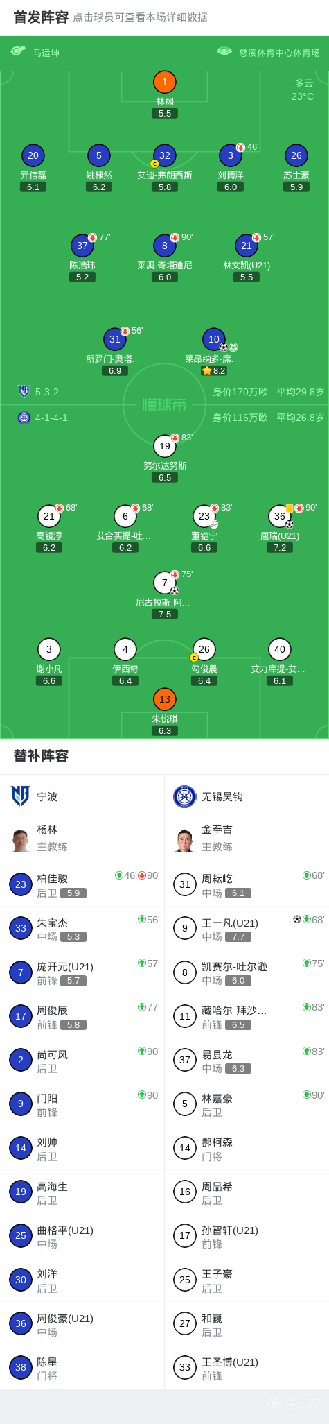 04-04 16:20宁波FC VS 无锡吴钩首发阵容已出!所罗门回归...