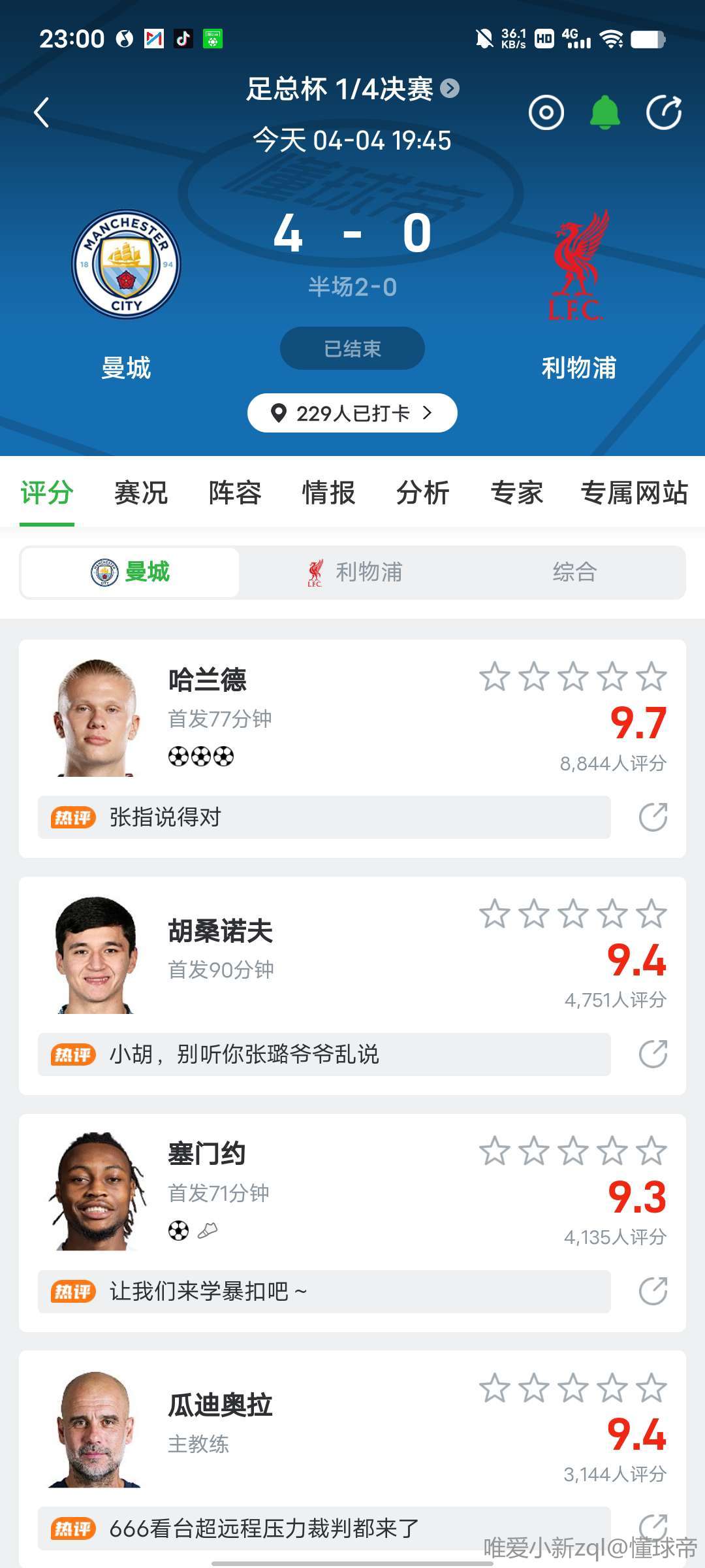 04-04 23:12剑南春丨曼城4-0利物浦晋级足总杯4强,哈兰德戴帽,塞门约传射