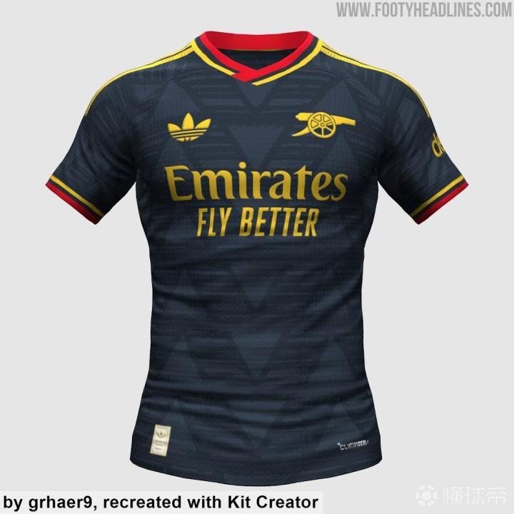 海军蓝底色+红黄点睛,高级又耐看,枪手这波客场球衣颜值直接拉满!沉稳海军蓝搭配经典红黄色,简约大气,既有质感又不失枪手本色,比曼联的好看多了