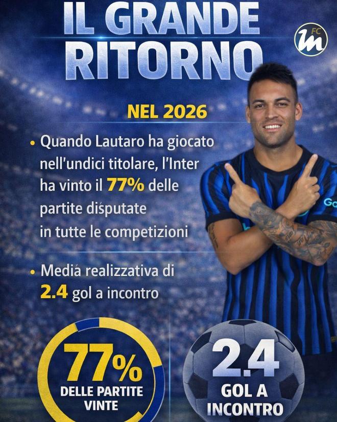 更重要的是,劳塔罗会带着全力争胜、毫不保留的拼搏尽头登上赛场,这对于全体队员来说都会是一种巨大的激励与鼓舞!