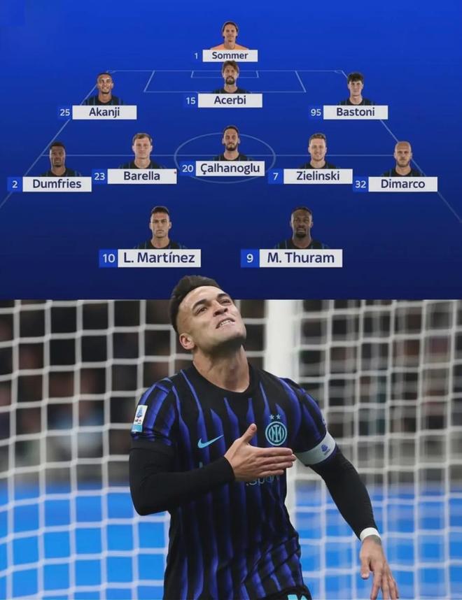 而根据各路媒体的共同预测,国米本场的首发阵容如下,除了比塞克因伤缺席之外,国米其他位置上都是最强阵容出战,锋线上劳塔罗与小图拉姆搭档出战,两翼位置则是迪马尔科与邓弗里斯联袂首发,三主力中场一字排开,这样的阵容久违了!