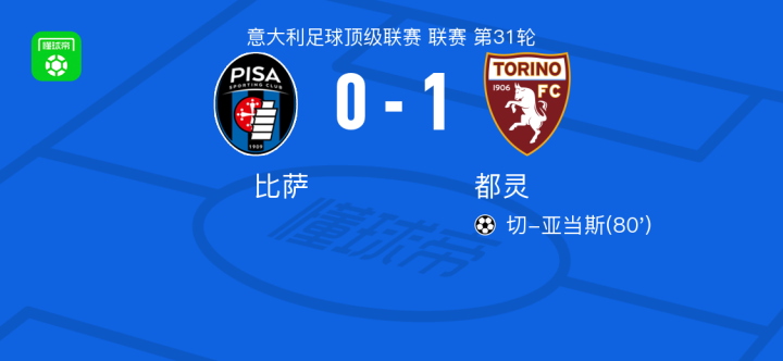 都灵1-0比萨,切-亚当斯制胜