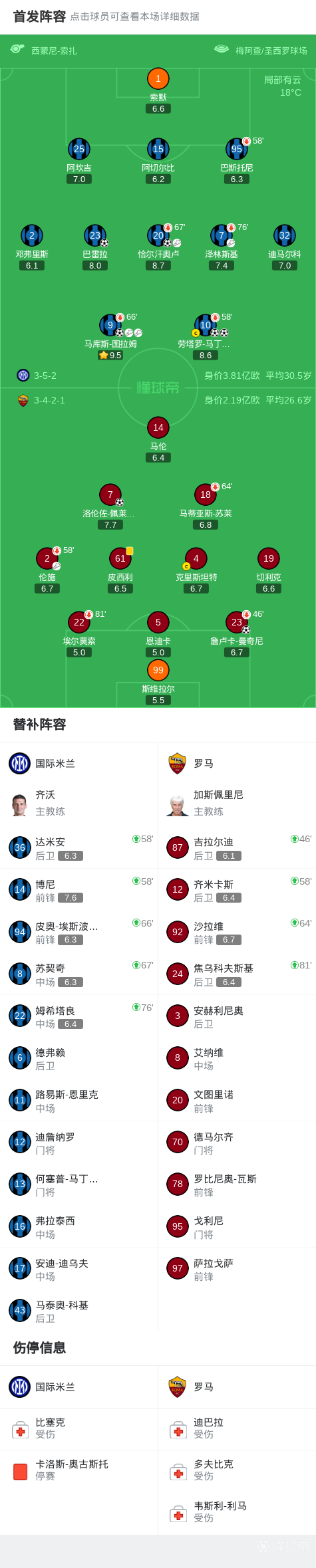 加斯佩里尼不是挺🐮的吗 ?上半赛季罗马可是前四稳的一批啊 怎么一把就输成了皮奥利了 这一下子把罗马争四的希望踢的越来越小了 国米面对加斯佩里尼十庆胜 罗马今天踢了个啥相信他们自己都懵了 罗马的61号和22号真是灾难 切利克今天也隐身了 不是完败是溃败啊 一下就把米兰争冠的希望浇灭了 也一下子把国米争冠的决心稳定了下来 意甲冠军无悬念了 塔罗和图拉姆的恐怖锋线又回来了