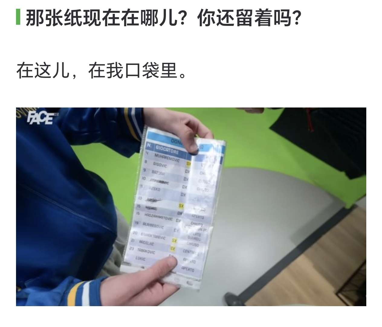 波黑FACE节目采访了在点球大战中拿走多纳鲁马纸条的球童,他讲述了自己当时拿走纸条的经过。