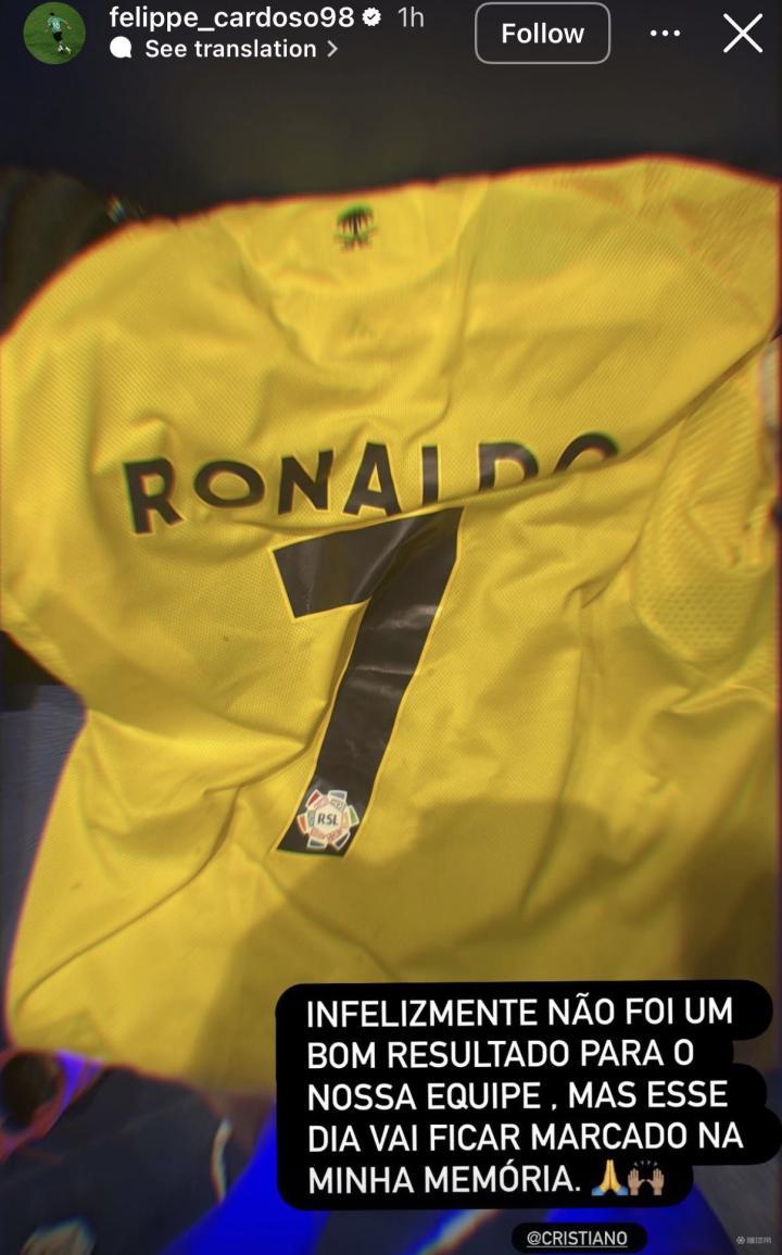 扫描下载懂球帝首页>动态> 纳杰马前锋卡多索赛后与C罗交换球衣:我会永远铭记这一天