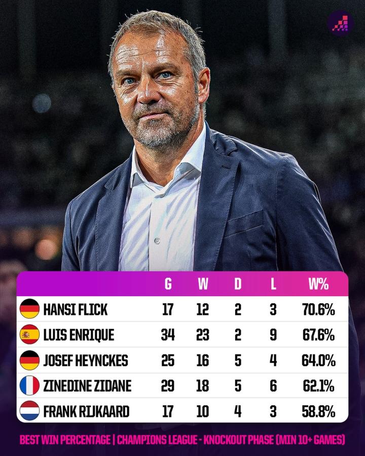 扫描下载懂球帝首页>动态> 主教练欧冠淘汰赛胜率排行:弗里克70.6%居首,恩里克次席