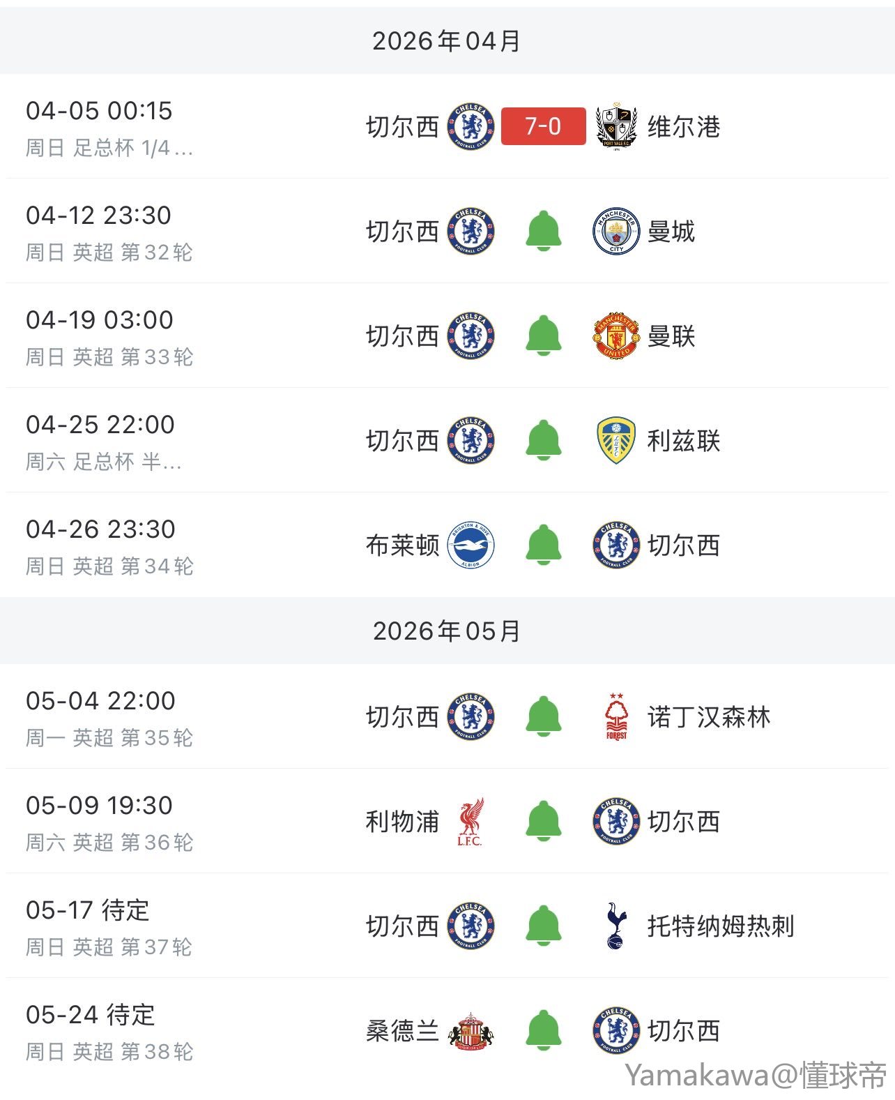 扫描下载懂球帝首页>动态> 切尔西最后7轮英超面对4支BIG 6,近两周需连战曼市双雄