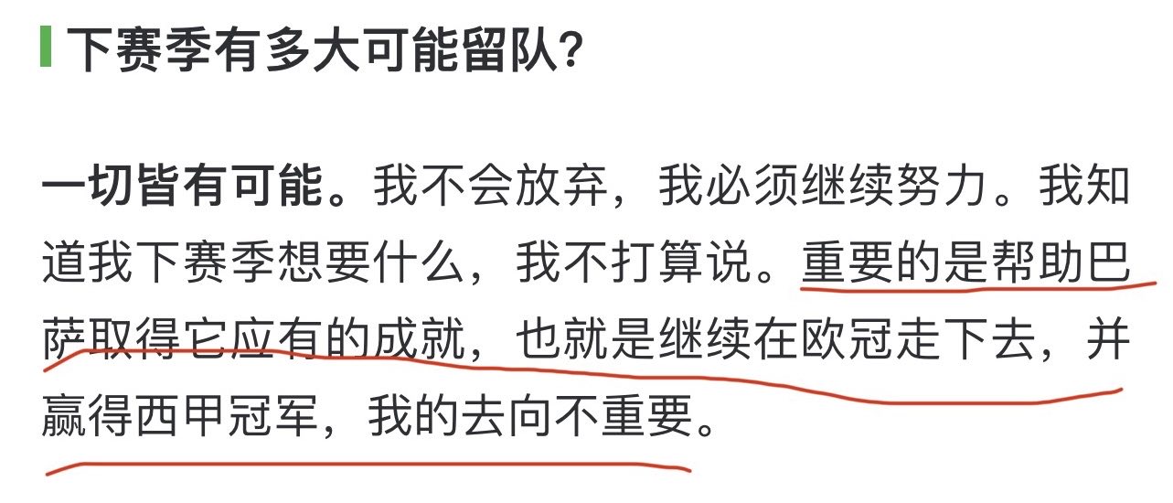 “我的去向不重要”,重要的是巴萨拿到冠军,这是真爱啊