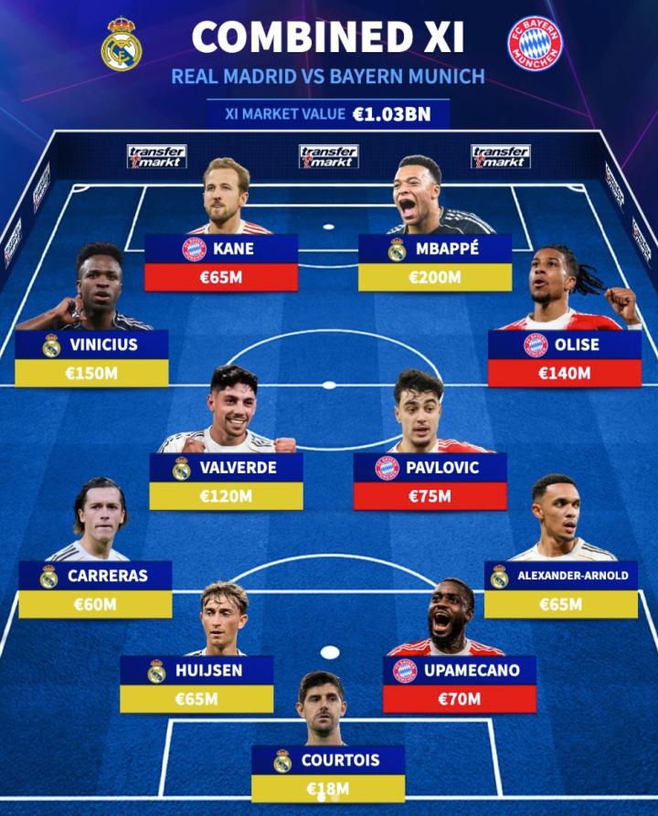 扫描下载懂球帝首页>动态> 德转列皇马+拜仁最贵11人:皇马7人姆巴佩2亿领衔,拜仁占4席
