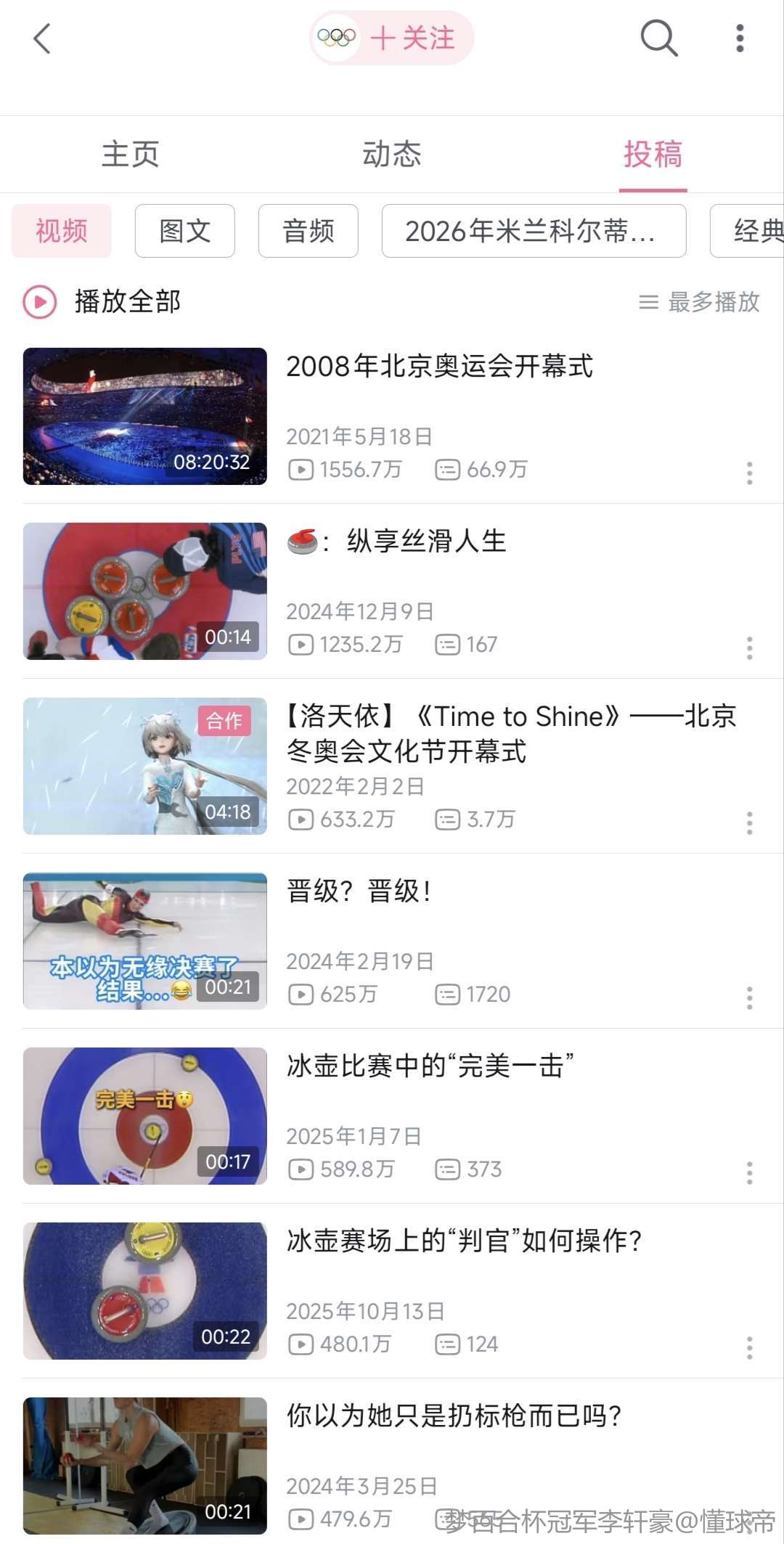 B站奥运会官号里什么项目的切片都放,结果最热的视频里冰壶占了一半左右,确实超乎想象