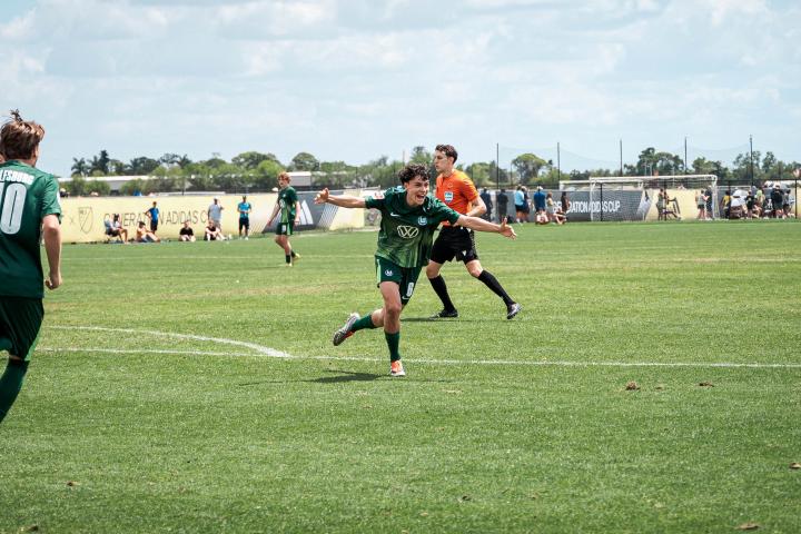 在对阵明尼苏达联的比赛中,他就用一脚精彩的直接打门,为狼堡U16打开了胜利之门。