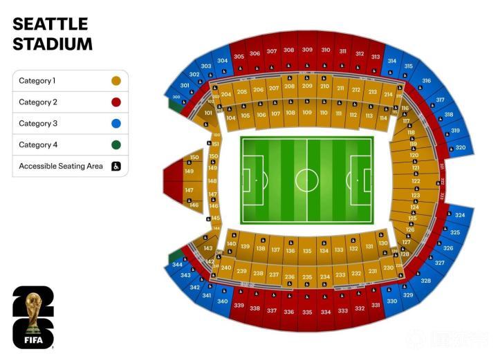 在去年秋冬期间,国际足联共售出超过300万张2026年世界杯门票。门票被划分为四个等级,每个等级对应球场内不同区域,相关信息通过售票系统中的彩色分区图以及官网发布的座位图呈现。