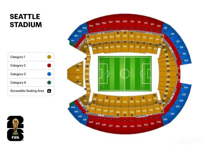 例如,西雅图流明球场最初的座位图显示为某种分布;到了12月,国际足联新增了球迷专区,将三个原属二级票的区域调整为三级票,并将一个一级票区域(146区上层部分)调整为二级票。