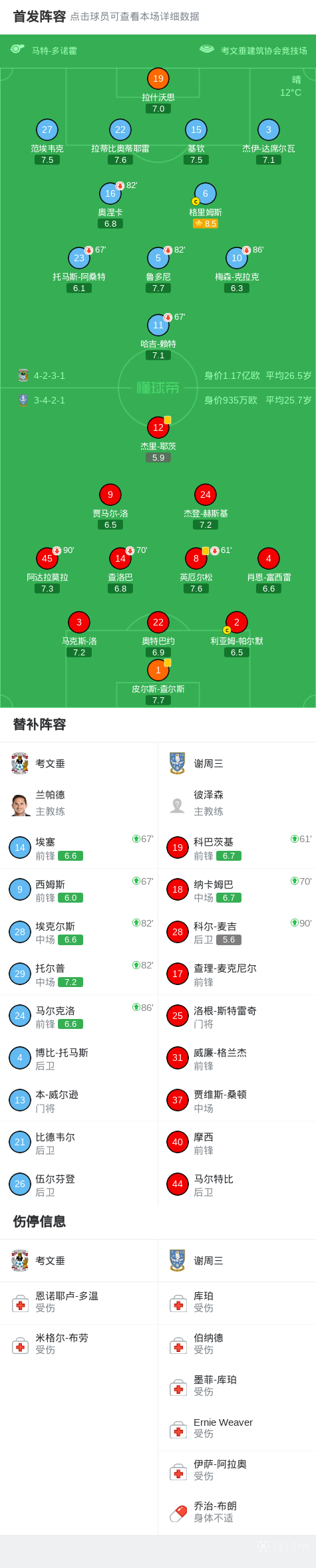 我们这阵容逼平了第一考文垂~(◕‿◕)✌️