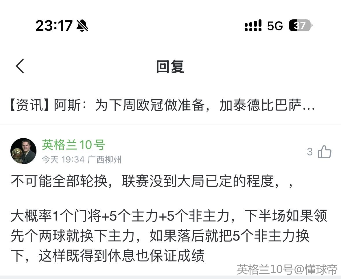 争冠+主场+加泰德比,这个比赛巴萨起码在首发不可能放小将,但是顺利的话估计60分钟左右就开始换了