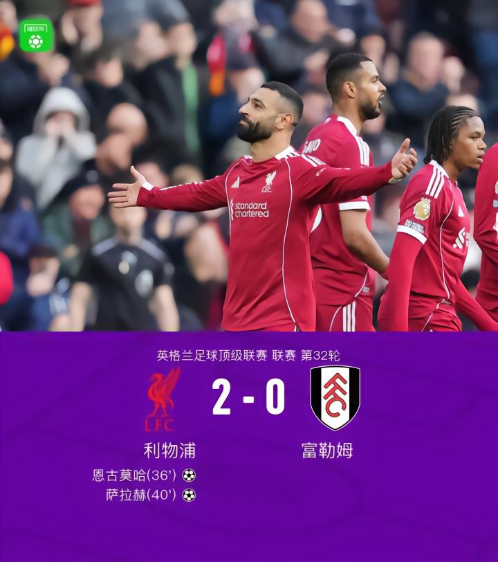 扫描下载懂球帝首页>动态> 剑南春丨利物浦2-0富勒姆,萨拉赫、恩古莫哈建功,维尔茨献助攻