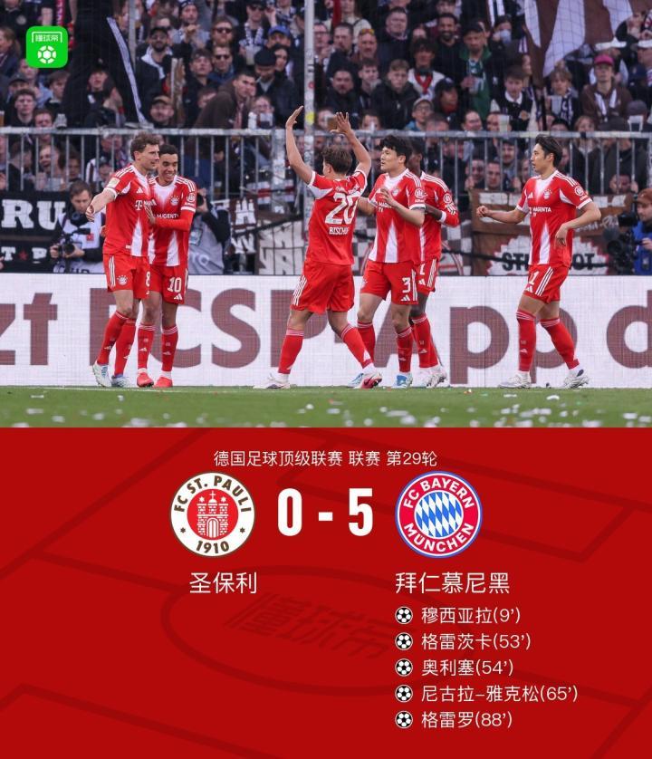 扫描下载懂球帝首页>动态> 剑南春丨拜仁5-0圣保利,穆西亚拉、格雷茨卡、雅克松传射
