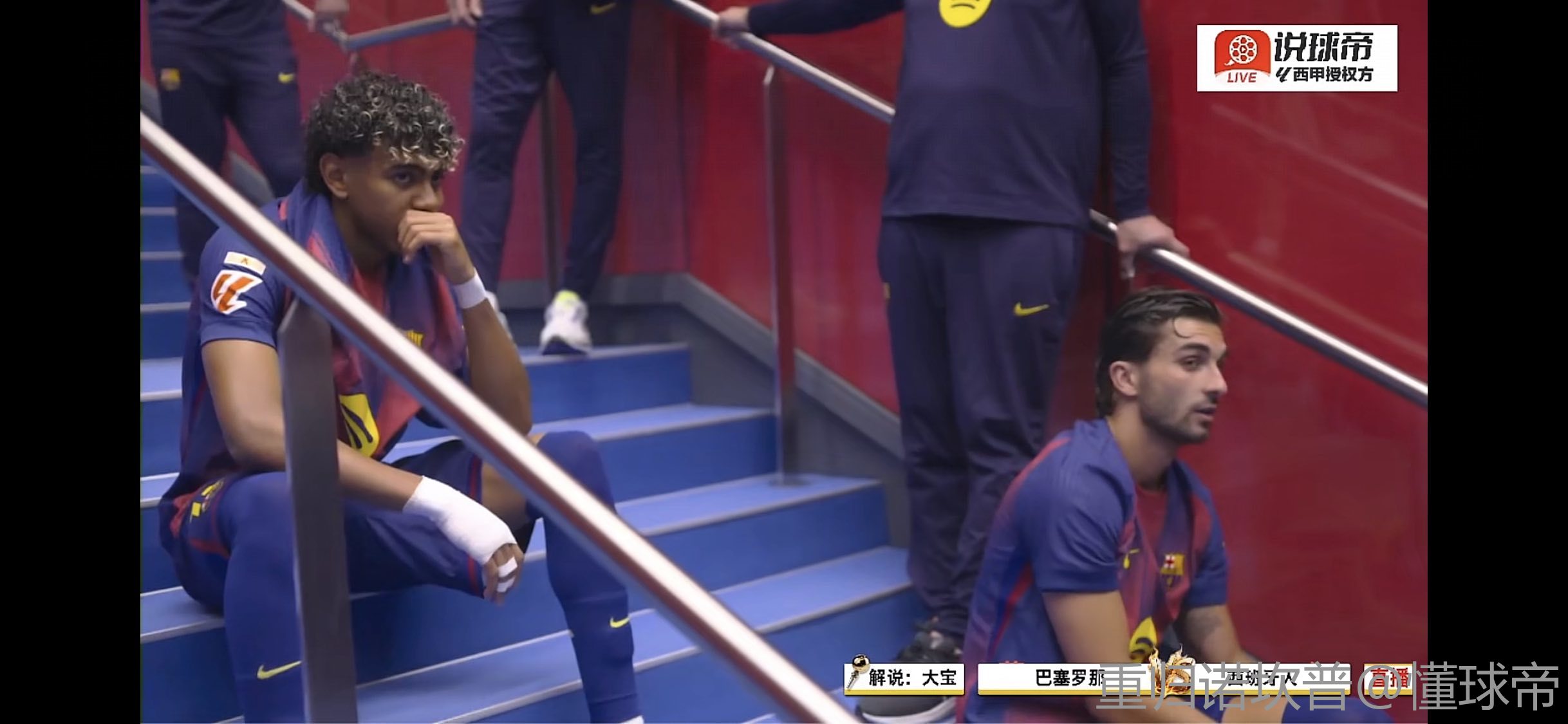 只有我看到比赛结束时大家都准备上去庆祝,只有热身半天却没上场的巴尔德吉坐在替补席最后面吗
