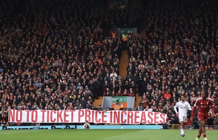 扫描下载懂球帝首页>动态> 抗议芬威提高票价,利物浦球迷高喊:把你们的定价塞回屁股里