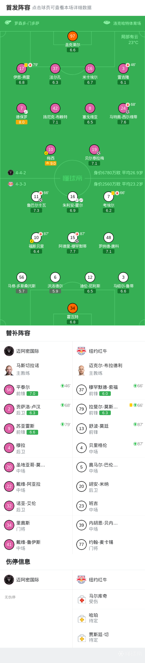 第38分钟,迈阿密左路起球,贝尔泰拉梅头球攻门被没收