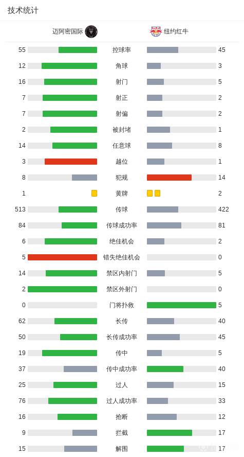 第55分钟,贝尔泰拉梅低射破门反超比分,迈阿密2-1纽约