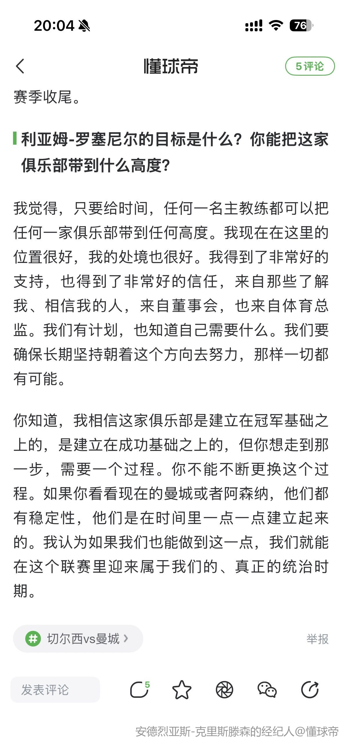 严禁商业机构或公司转载,违者必究;球迷转载请注明来源“懂球帝”