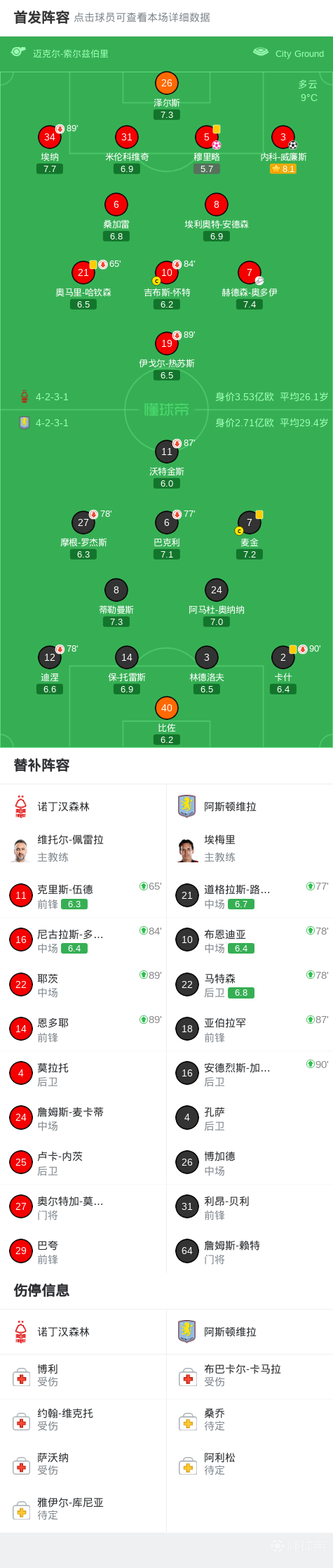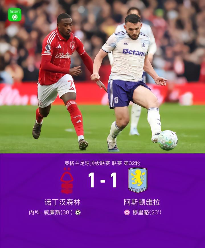 04-12 23:03诺丁汉森林 vs 阿斯顿维拉 比赛动态