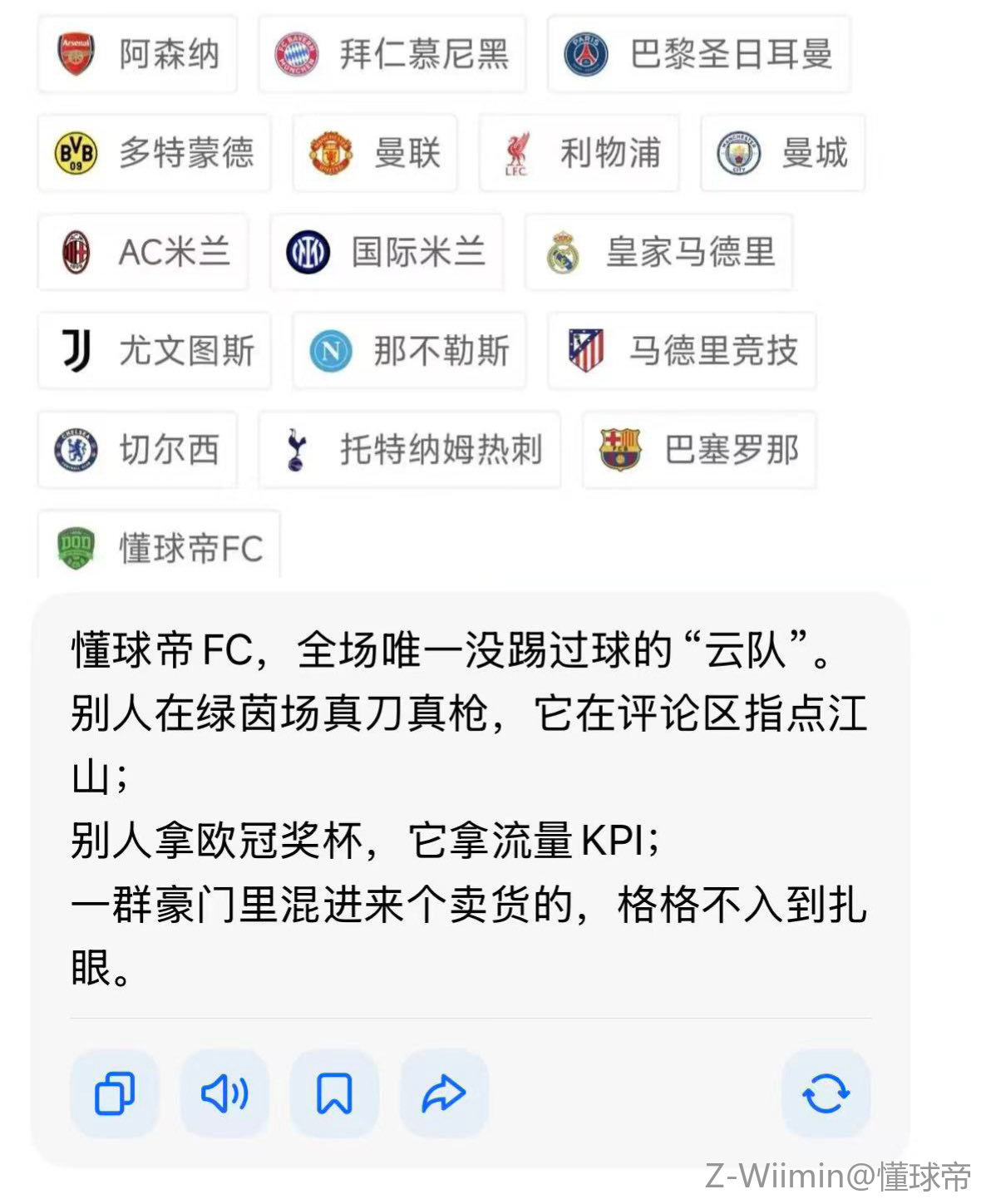 我没听说过懂球帝fc,它甚至不是一个豪门