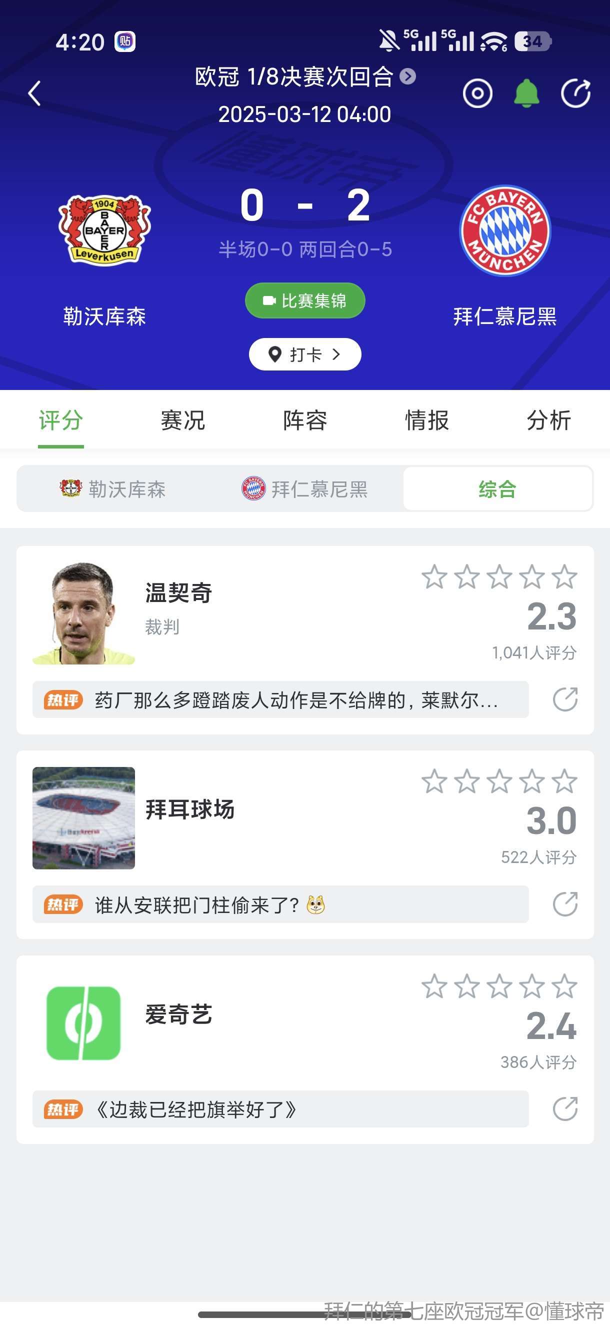 勒沃库森 0-2 拜仁(24/25赛季欧冠)
