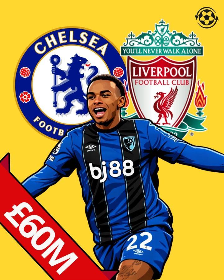 扫描下载懂球帝首页>动态> 懂球号> 利物浦与切尔西预计将为19岁的伯恩茅斯前锋朱尼尔·克鲁皮..