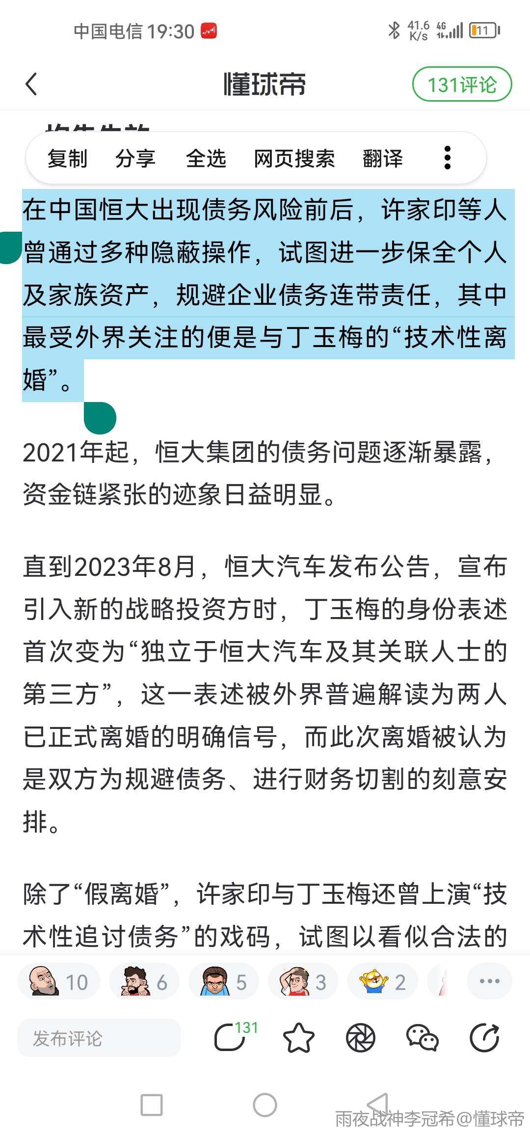 这种新闻评论区就不会见到恒大标